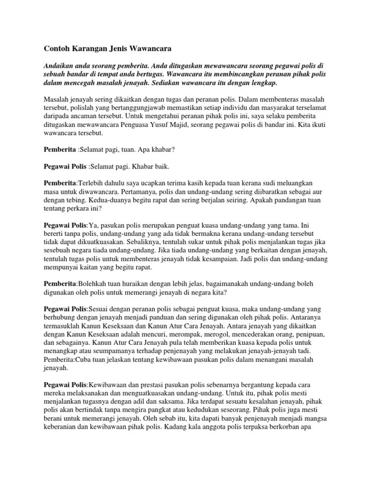 Antara contoh karangan jenis wawancara yang boleh . Abu diminta oleh guru kelas menemu . Contoh karangan temu ramah id jobs db.